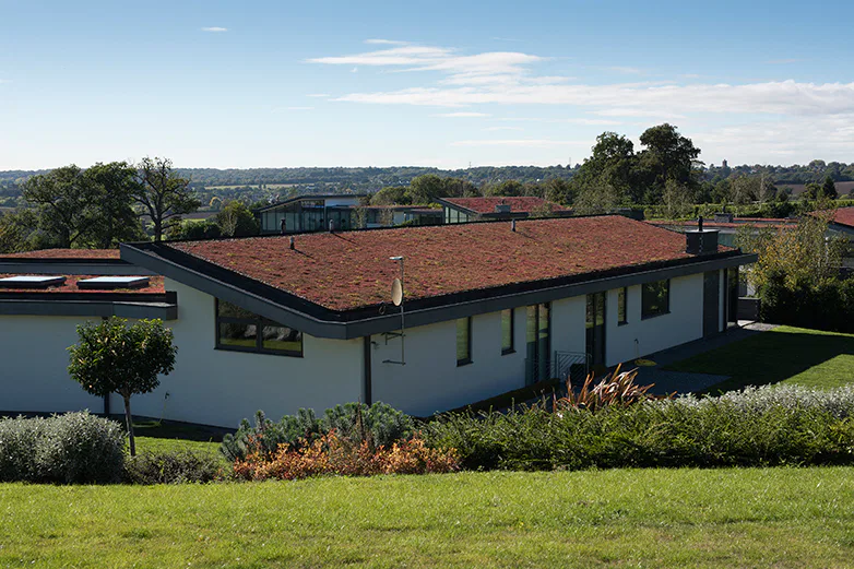 The houses are partly dug into the ground so that their impact on the surrounding countryside and views both into and out of the site can be carefully controlled. These houses will be virtually invisible from Gaynes Park Mansion and will not interfere with important views to or from this location, thus preserving the setting of the Heritage asset.